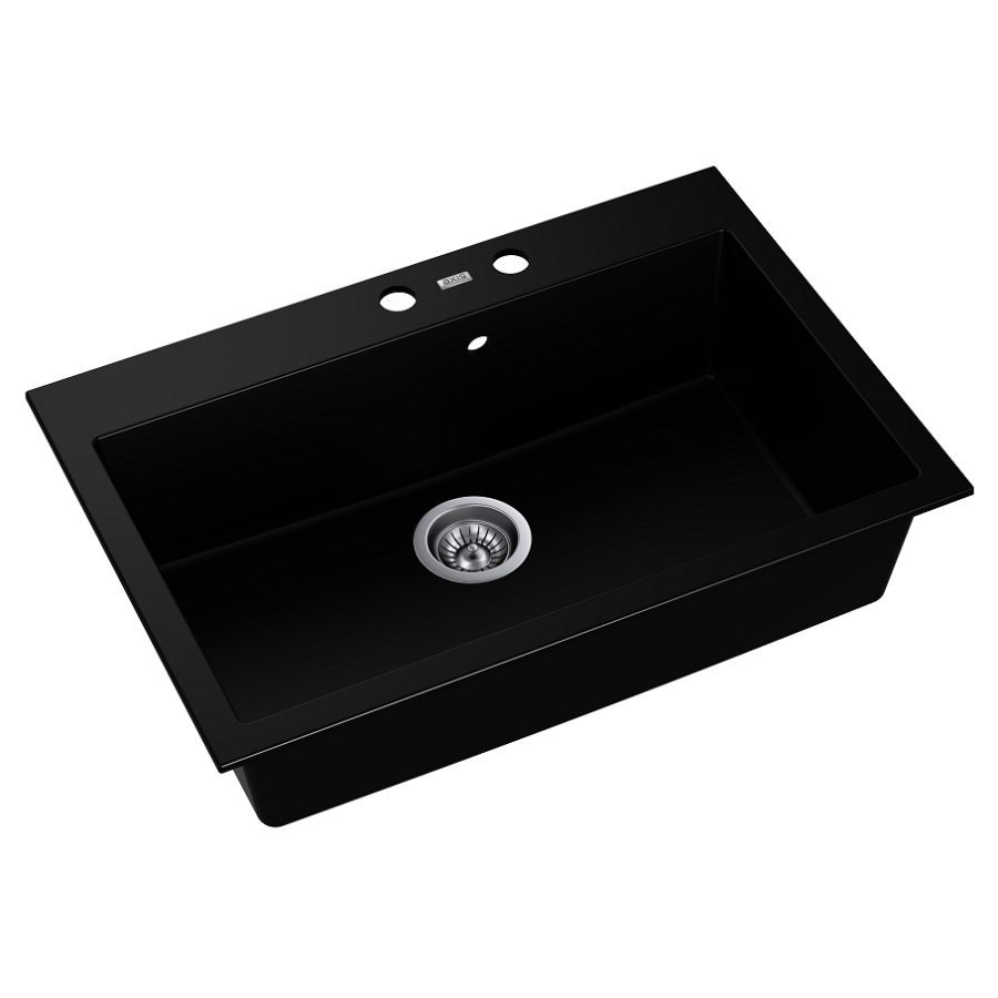 A-POINT 60 gránit mosogató automata dugóemelő, szifonnal, fekete-szemcsés fényes, beépíthető