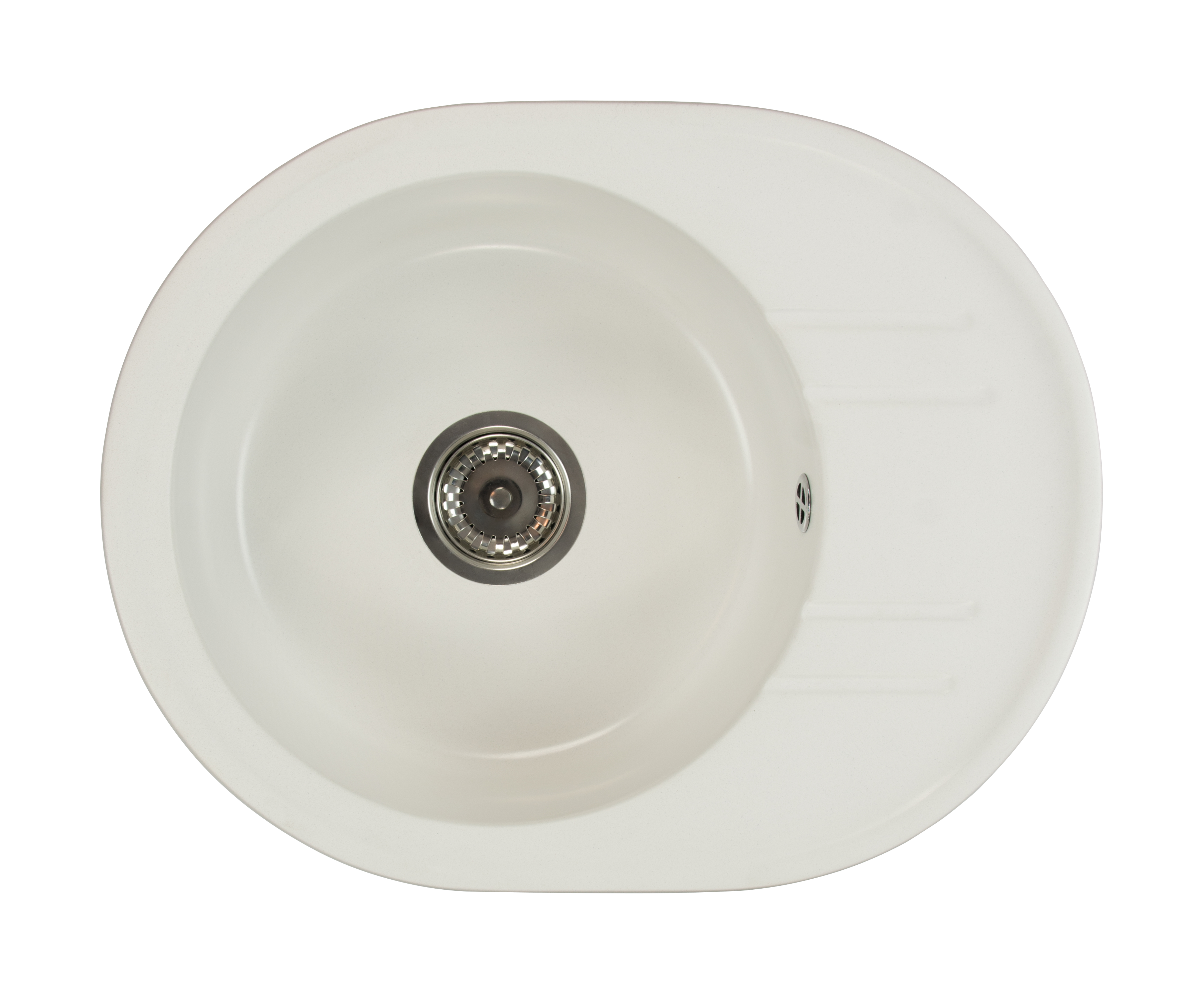 Egymedencés kör alakú csepptálcával ellátott gránit mosogató, amely ideális kis konyhákba, mély medencével, fekete, bézs, szürke, fehér, fekete-szemcsés színekben.