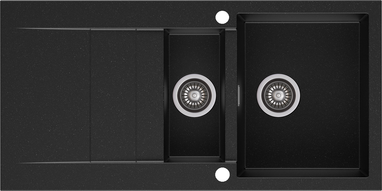 CASCADA 150 másfél medencés gránit mosogató automata dugóemelő, szifonnal, fekete, beépíthető