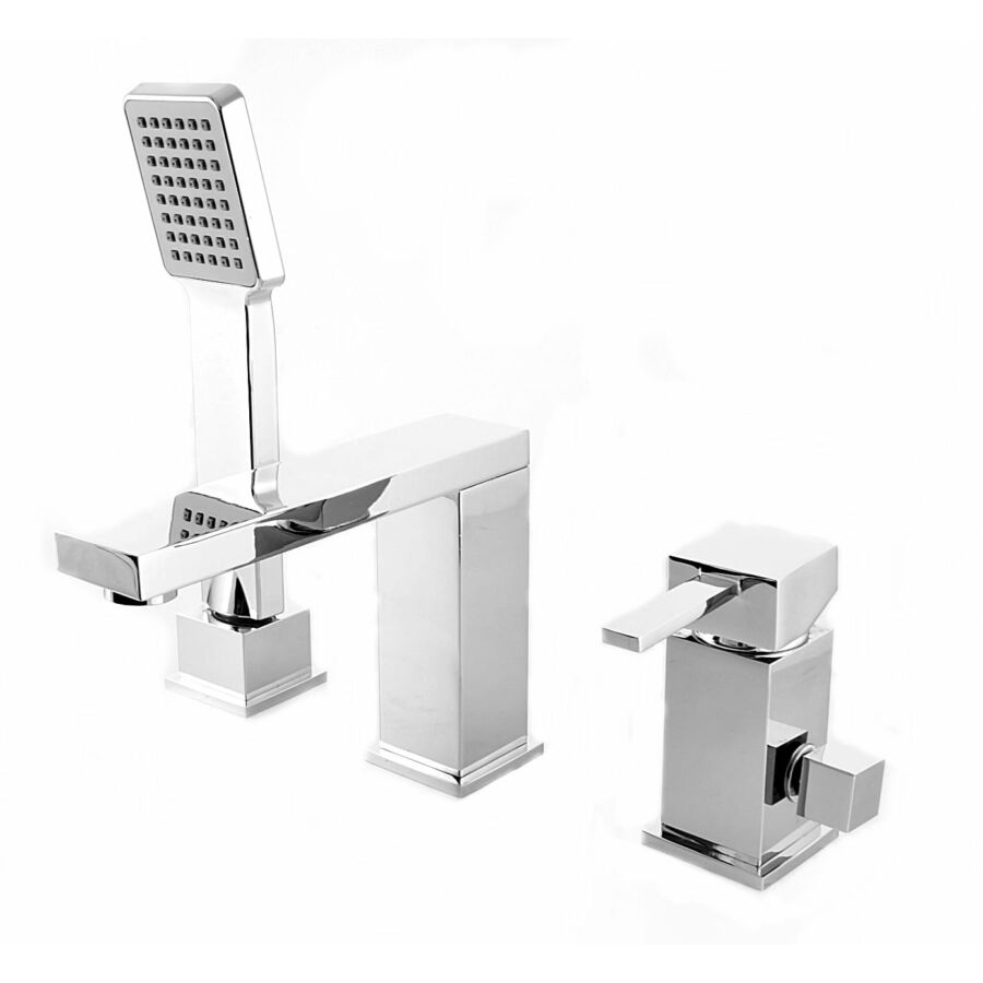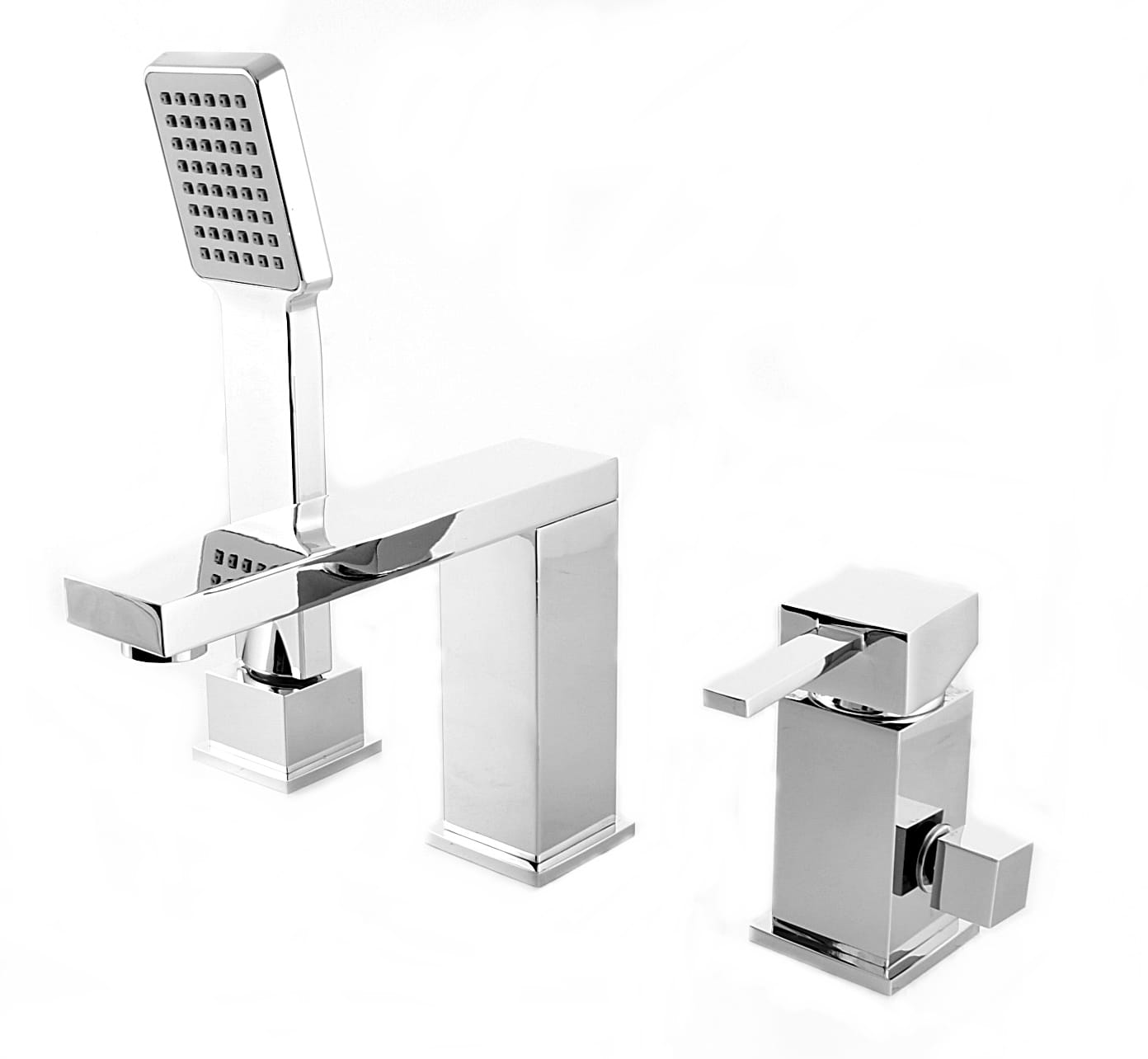 Cuadro kádtöltő csaptelep + kihúzható zuhanyfej, 3 lyukú kádra szerelhető fekete