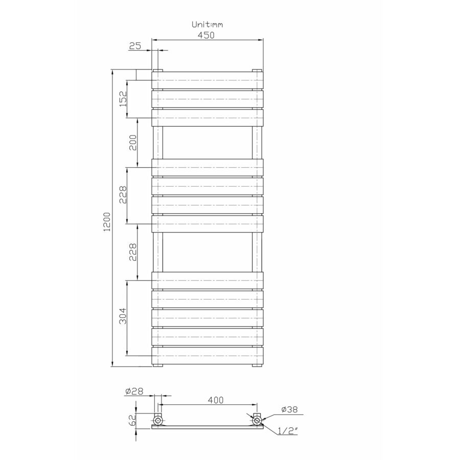 Design classic törölközőszárító radiátor 45cm x 120cm, feketeHasonló termékek