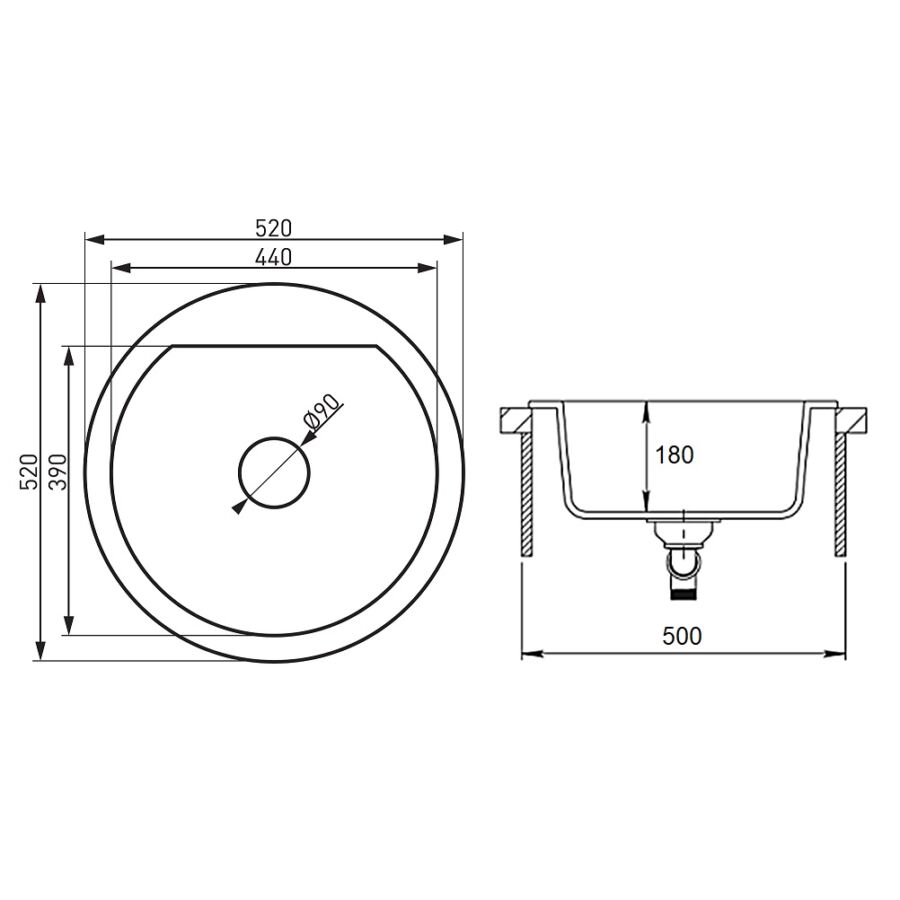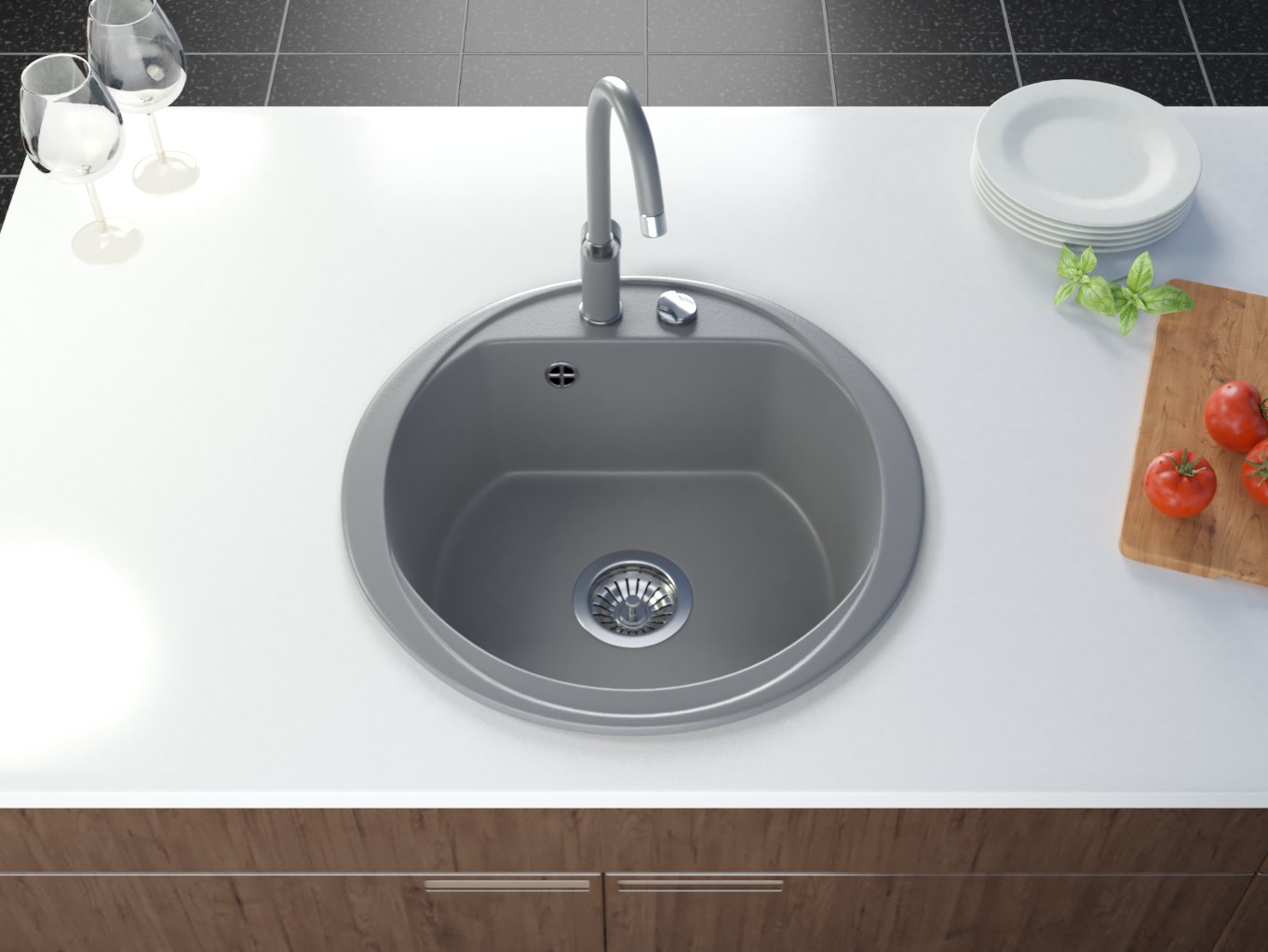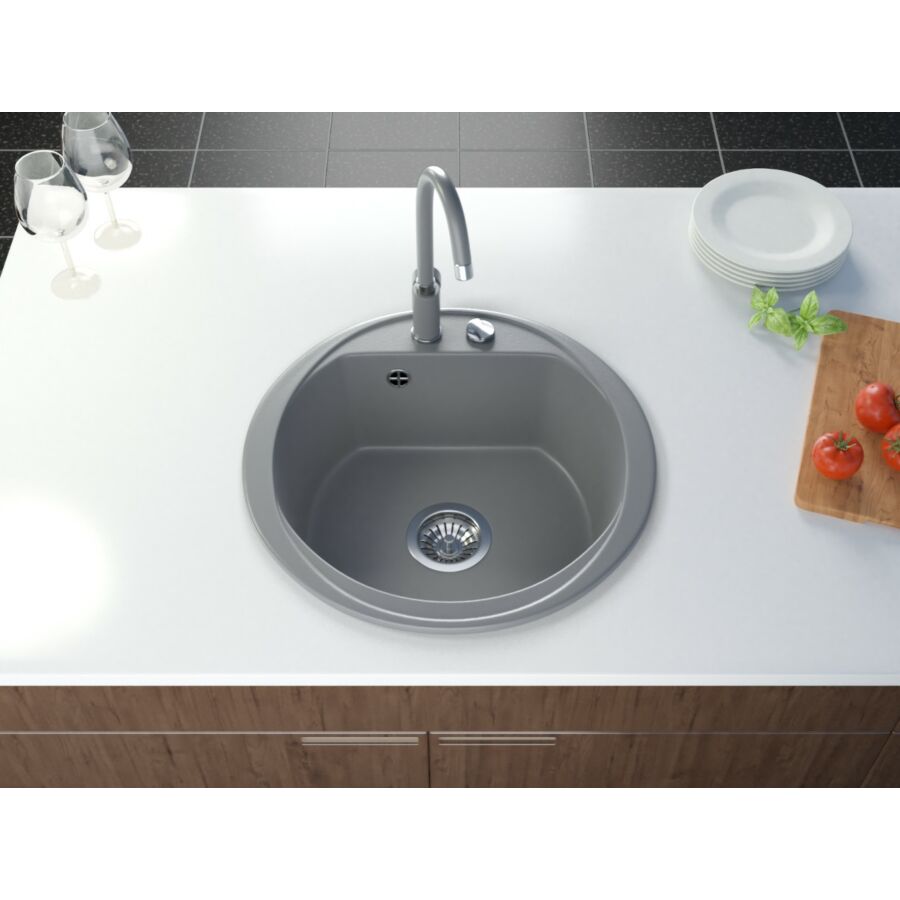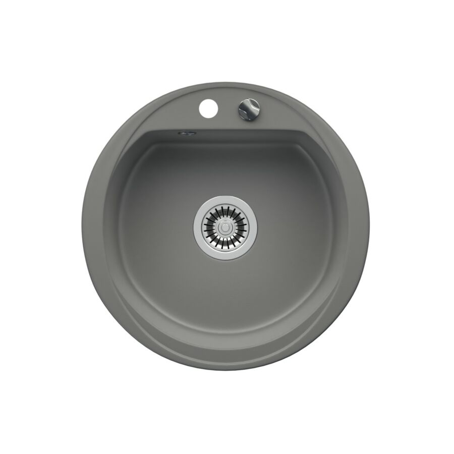 DON egymedencés kör alakú gránit mosogató, csepptálcás kivitelben, extra mély medencével, fekete-szemcsés, fekete, bézs, fehér és szürke színekben. Jobbos és balos kivitelben is használható. A DON egymedencés kör alakú gránit mosogató min. 45 cm széles szekrénybe építhető be.