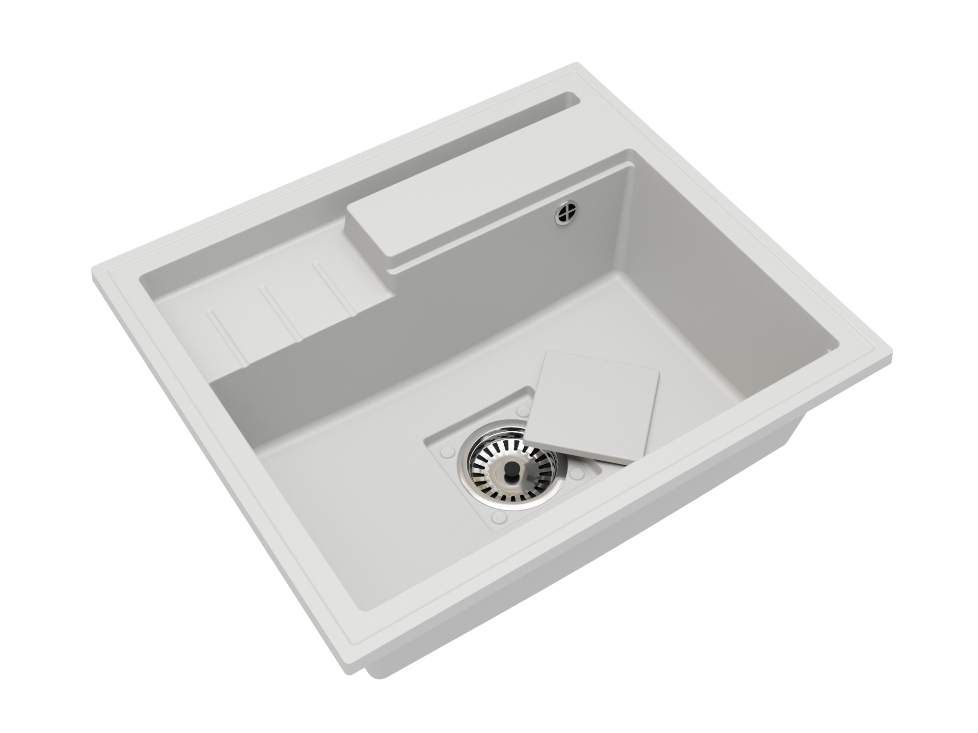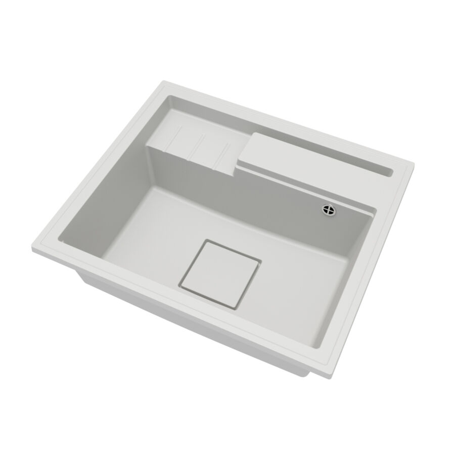 ELITE 6052 gránit mosogató manuális szifonnal, fehér, beépíthető