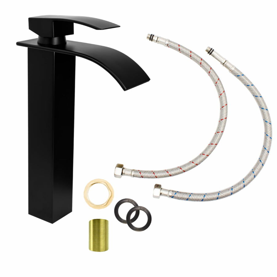 Elva magasított mosdó csaptelep vízesés alakú vízsugárral fekete, beépíthetőHasonló termékek