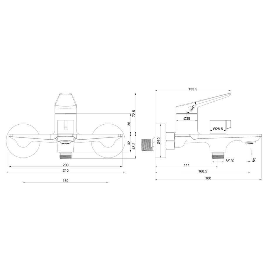 | Fali bekötési pont távolság | Szabványos 150 mm-es |