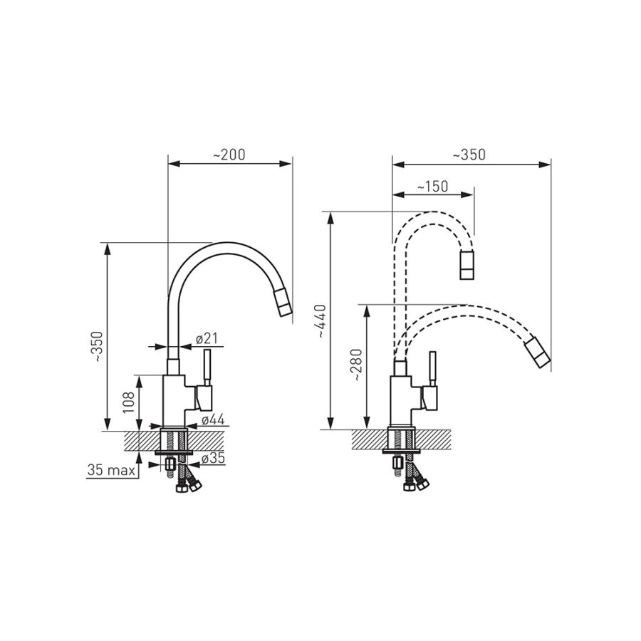 Ferro Zumba Flexibilis Csövű Csaptelep, mely a funkcionalitás és stílus tökéletes egyensúlyát kínálja konyhája számára. Ez az elegáns és modern csaptelep rendelkezik rugalmas csövekkel, amelyek lehetővé teszik a könnyű irányítást és a személyre szabott használatot. A Ferro Zumba csaptelep magas minőségű anyagokból készül, biztosítva a tartósságot és megbízhatóságot. A csaptelep felszereléséhez 35 mm átmérőjű furat szükséges.