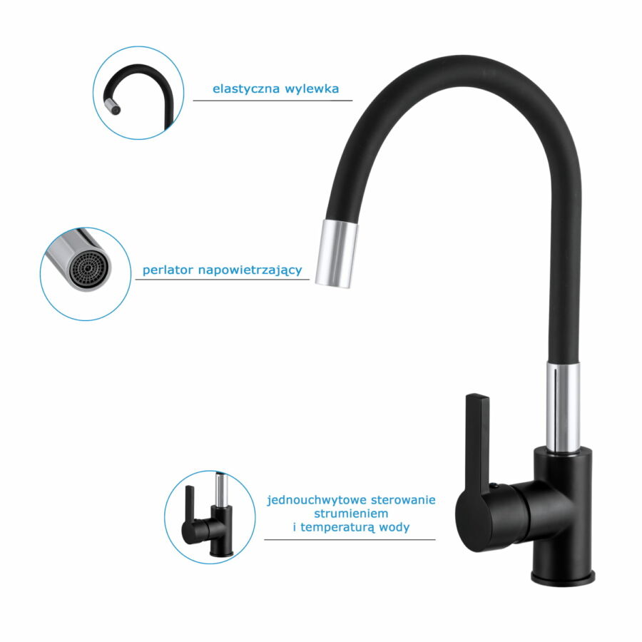 Flex konyhai csaptelep fekete-króm, beépíthető