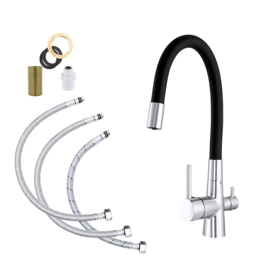 Flex 3 utas konyhai csaptelep beépített vízszűrő berendezéshez króm, beépíthetőFlex 3 utas konyhai csaptelep beépített vízszűrő berendezéshez fekete, beépíthető