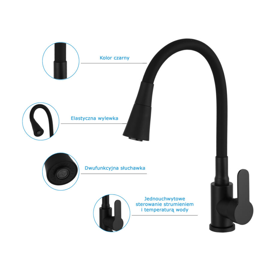 Flex 3000 konyhai csaptelep fekete, beépíthetőDeco konyhai csaptelep szálcsiszolt arany, beépíthető