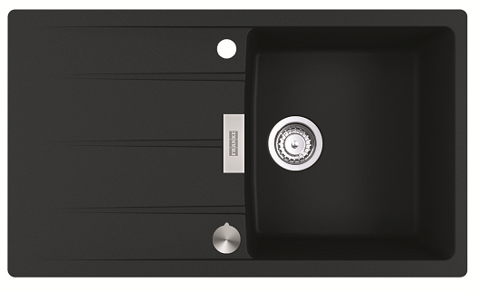 FRANKE CENTRO 611-86 gránit mosogató automata dugóemelő, szifonnal, fekete, beépíthetőFRANKE CENTRO 611-86 gránit mosogató automata dugóemelő, szifonnal, matt fekete, beépíthető
