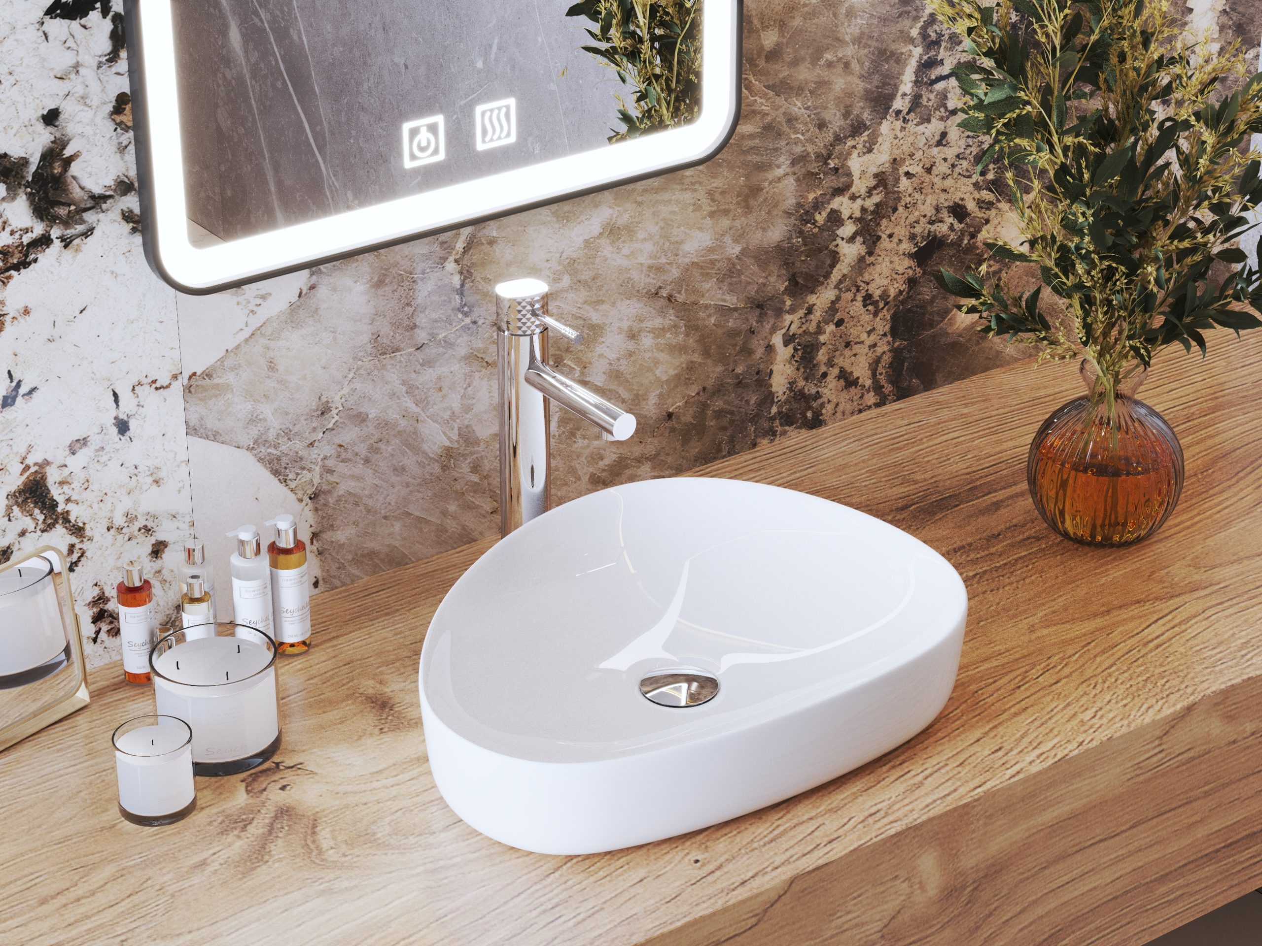 A Gamma Bianco munkalapra helyezhető ovális mosdótál, amely illeszkedik a modern belsőépítészeti trendekhez. A munkalapra helyezve a fürdőszoba központi dekorációja lesz, különösen azért, mert érdekes formájával vonzza a figyelmet. A Gamma Bianco ovális mosdótál, mérete 610x415mm. Mélysége 155 mm, így a víz nem fröccsen a munkalapra a mindennapi higiéniai tevékenységek során. A Gamma Bianco ovális mosdó, fehér színben tökéletes a modern és hagyományos fürdőszobákhoz is.