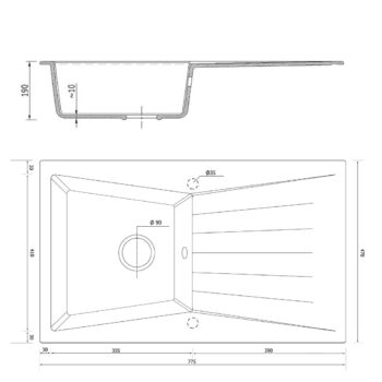 RUBIN gránit mosogató automata dugóemelő, szifonnal, fekete-szemcsés, beépíthető