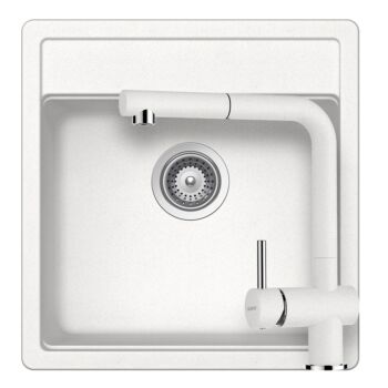 SCHOCK Nemo N-100S Cristalite Alpina egymedencés gránit mosogató szett, Schock Epos csaptelep, fehér, beépíthető