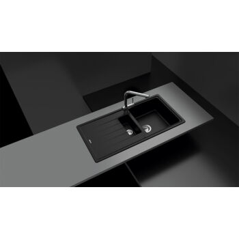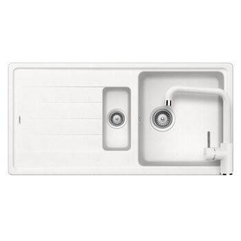 SCHOCK Element D-150 Cristalite Alpina másfél medencés gránit mosogató szett, Schock Fonos konyhai csaptelep, fehér, beépíthető