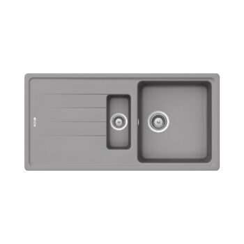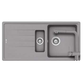SCHOCK Element D-150 Cristalite Croma másfél medencés gránit mosogató szett, Schock Epos Ext konyhai csaptelep kihúzható, szürke, beépíthető