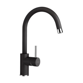 SCHOCK Formhaus D-200 Cristalite Nero kétmedencés csepegtetőtálcás gránit mosogató szett, Schock Plutos konyhai csaptelep, fekete, beépíthető