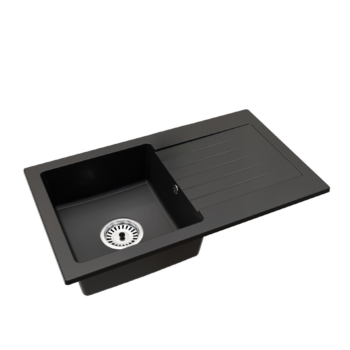 Leon2 gránit mosogató automata szűrőkosaras leeresztővel szifonnal fekete, beépíthető