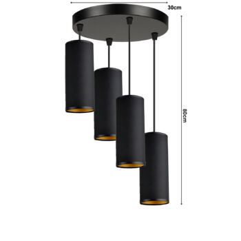 LEDLUX LX-1307 függesztett mennyezeti lámpa,4xE27, fekete