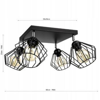 LEDLUX LX-1088 függesztett mennyezeti lámpa,4xE27, fekete