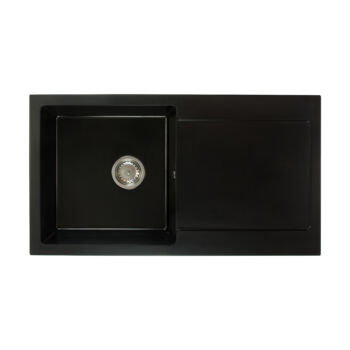 Alex mosogató szett 2 féle választható csapteleppel (Beta, Steel) automata szűrőkosaras leeresztővel, szifonnal fekete színben, beépíthető