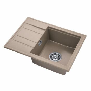 Modern 6040 csepegtetőtálcás egymedencés gránit mosogató, manuális szifonnal, bézs, beépíthető