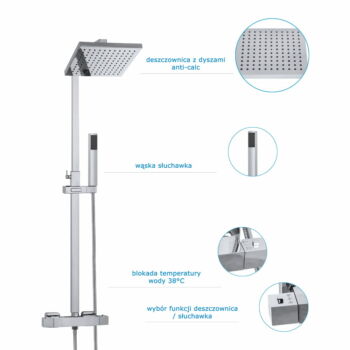 Cube termosztatikus esőztető zuhanyszett szögletes zuhanyfejjel króm, beépíthető