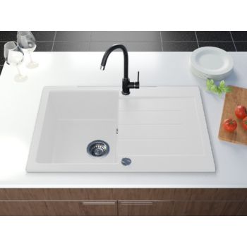 Roxy mosogató szett 2 féle választható csapteleppel (Beta, Steel) automata szűrőkosaras leeresztővel, szifonnal fehér színben, beépíthető