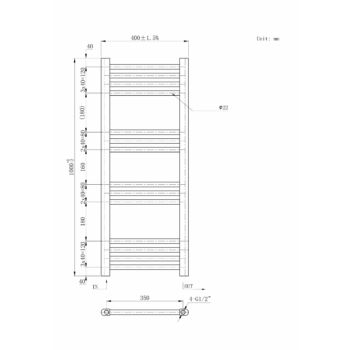 Törölközőszárító radiátor, Basic 40cm x 100cm, fekete