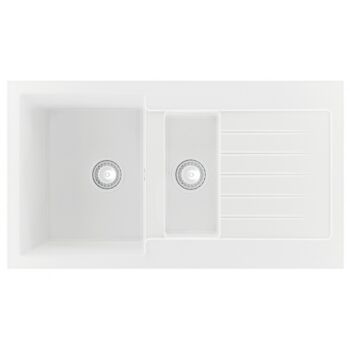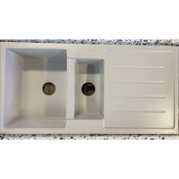 NEXT2 másfél medencés gránit mosogató FALI CSAPHOZ szifonnal,fehér, beépíthető