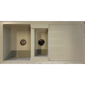 NEXT2 másfél medencés gránit mosogató FALI CSAPHOZ szifonnal, bézs, beépíthető