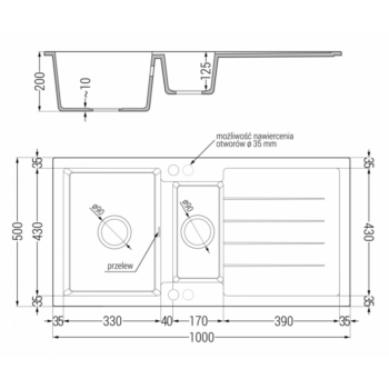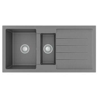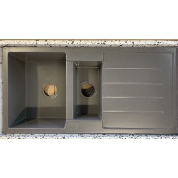 NEXT2 másfél medencés gránit mosogató FALI CSAPHOZ szifonnal, szürke, beépíthető