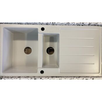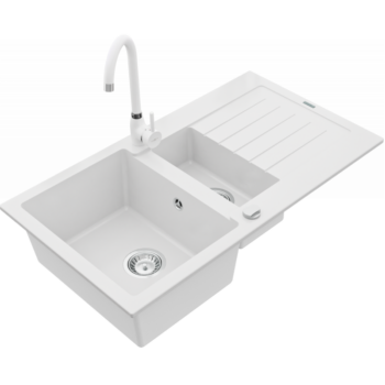 NEXT2 másfél medencés mosogató szett 2 féle választható csapteleppel (Beta, Steel) automata szűrőkosaras leeresztővel, szifonnal fehér színben, beépíthető