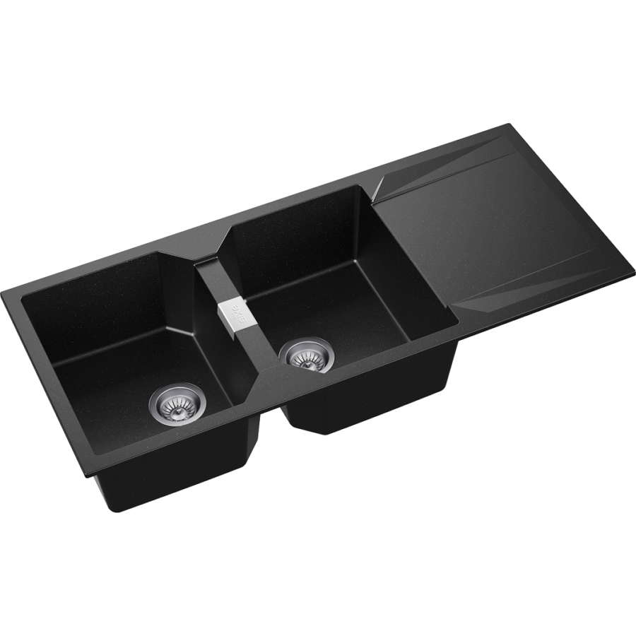 KRONOS 200 kétmedencés csepegtetőtálcás kivitelben, extra mély medencével, fekete-szemcsés, fekete, bézs, fehér és szürke színekben. Jobbos és balos kivitelben is használható. A KRONOS 200 kétmedencés csepptálcás min. 80 cm széles szekrénybe építhető be.