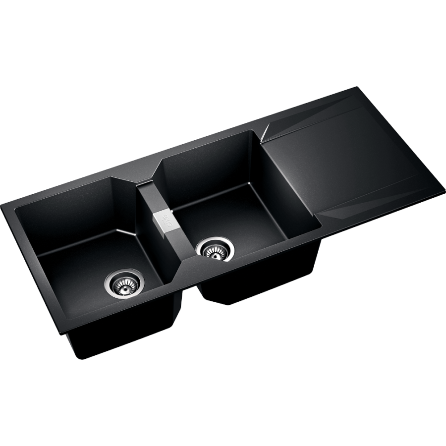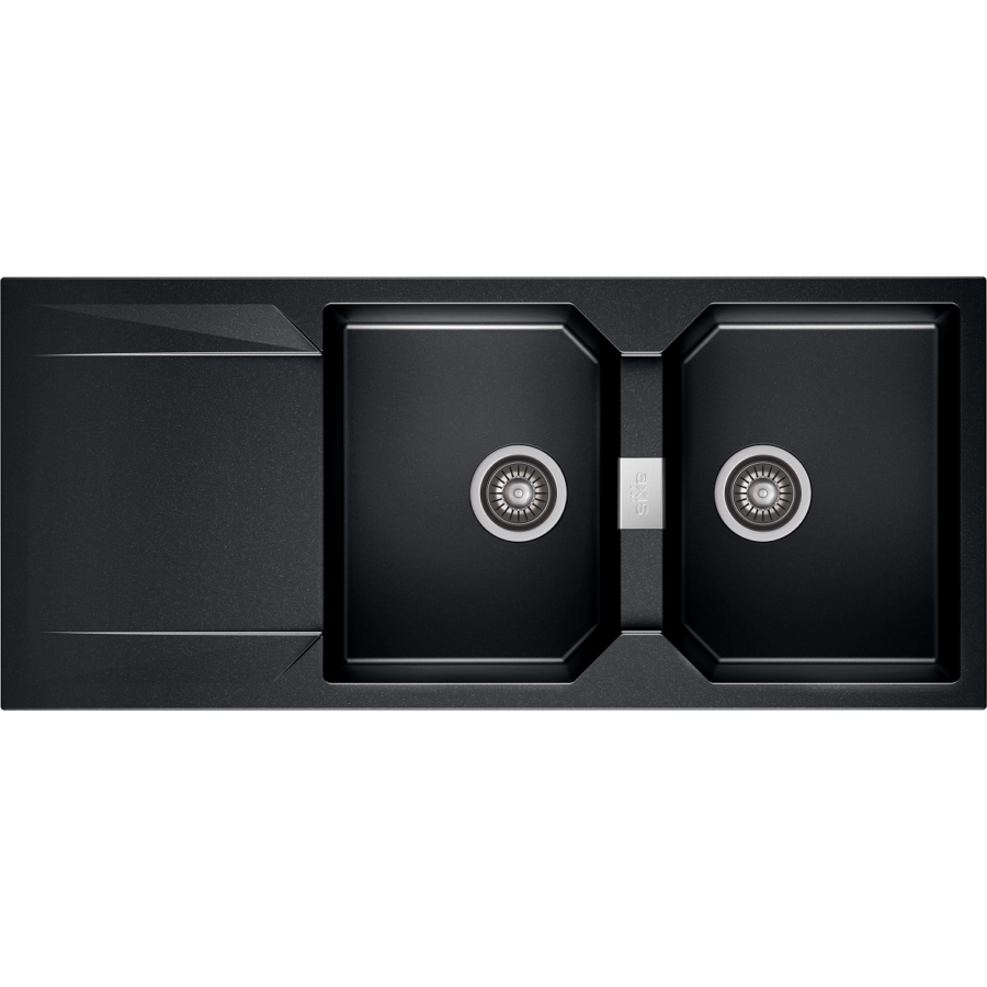 KRONOS 200 kétmedencés csepegtetőtálcás gránit mosogató automata dugóemelő, szifonnal, fekete-szemcsés fényes, beépíthetőKRONOS 200 kétmedencés csepegtetőtálcás gránit mosogató automata dugóemelő, szifonnal, szürke, beépíthető
