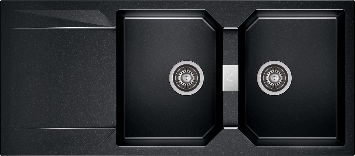 KRONOS 200 kétmedencés csepegtetőtálcás kivitelben, extra mély medencével, fekete-szemcsés, fekete, bézs, fehér és szürke színekben. Jobbos és balos kivitelben is használható. A KRONOS 200 kétmedencés csepptálcás min. 80 cm széles szekrénybe építhető be.