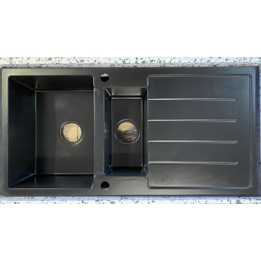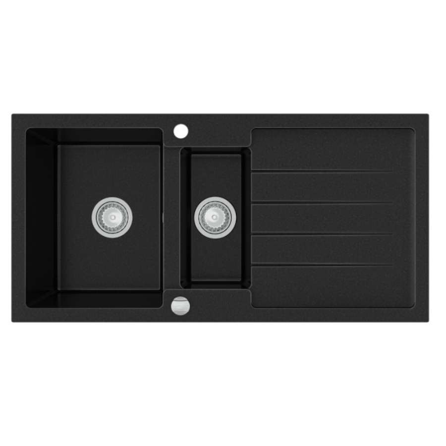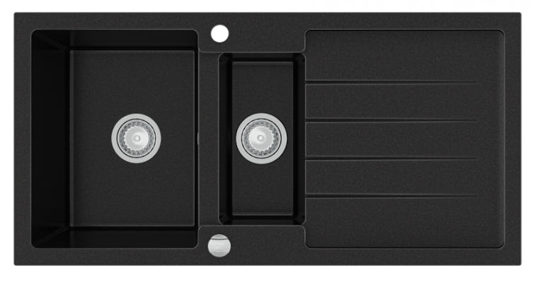 NEXT2 másfél medencés gránit mosogató automata dugóemelő, szifonnal, fekete-szemcsés, beépíthető