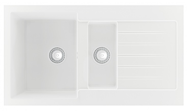 NEXT2 másfél medencés gránit mosogató automata dugóemelő, szifonnal, fehér, beépíthető