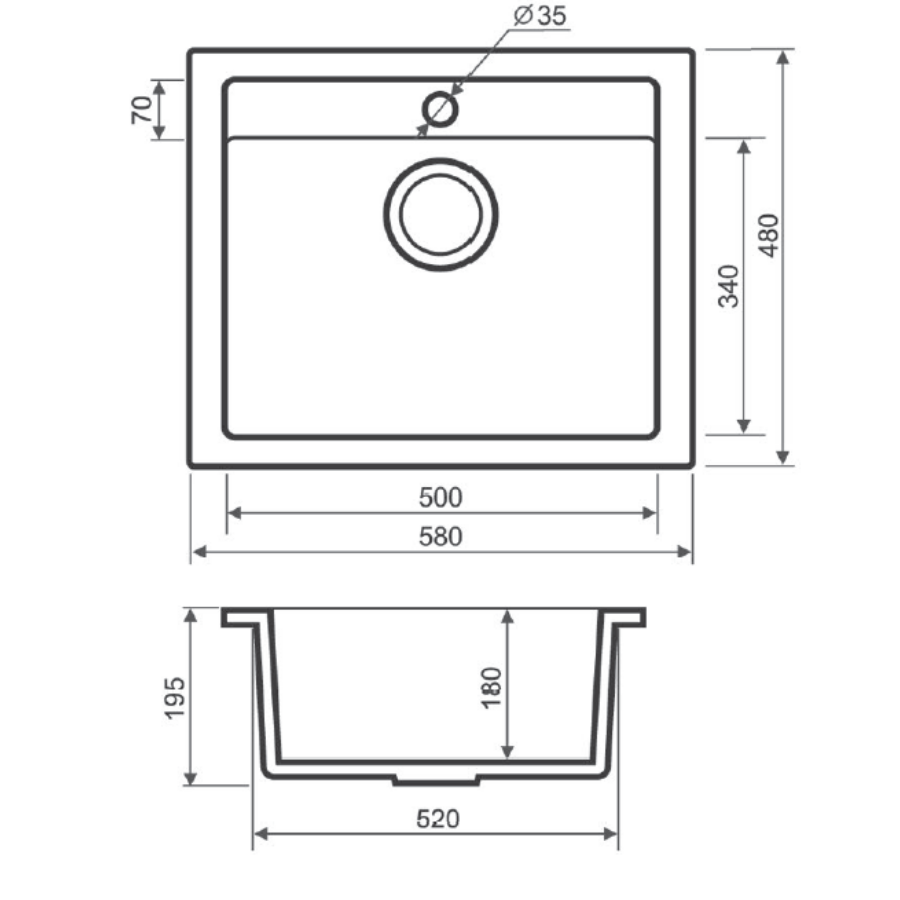 NIZZA egymedencés gránit mosogató, mély medencével, fekete-szemcsés, fekete, bézs, fehér és szürke színekben. A NIZZA egymedencés gránit mosogató min. 50 cm széles szekrénybe építhető be.