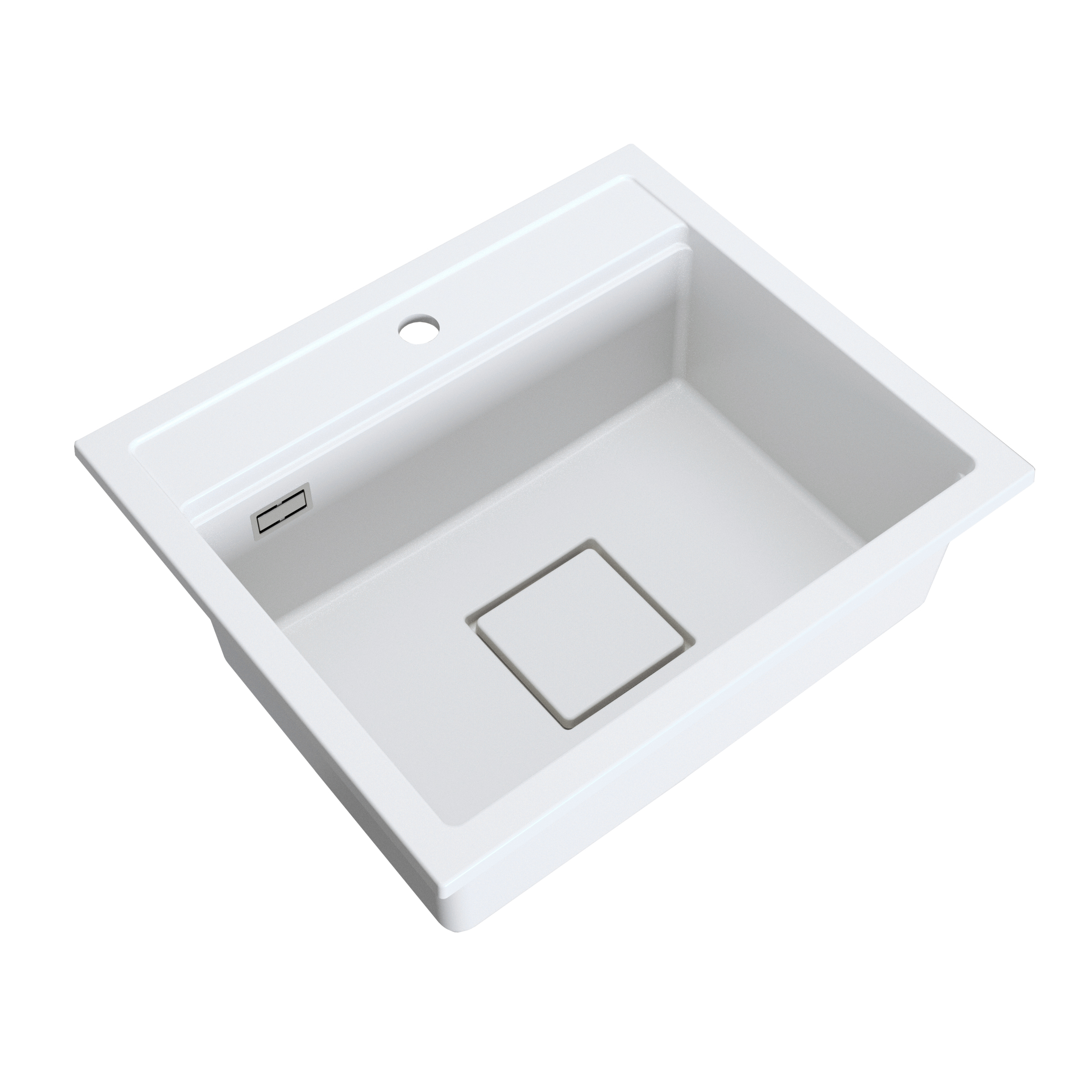 Gamma Quadro 8151 gránit mosogató, szifonnal, fehér, beépíthető
