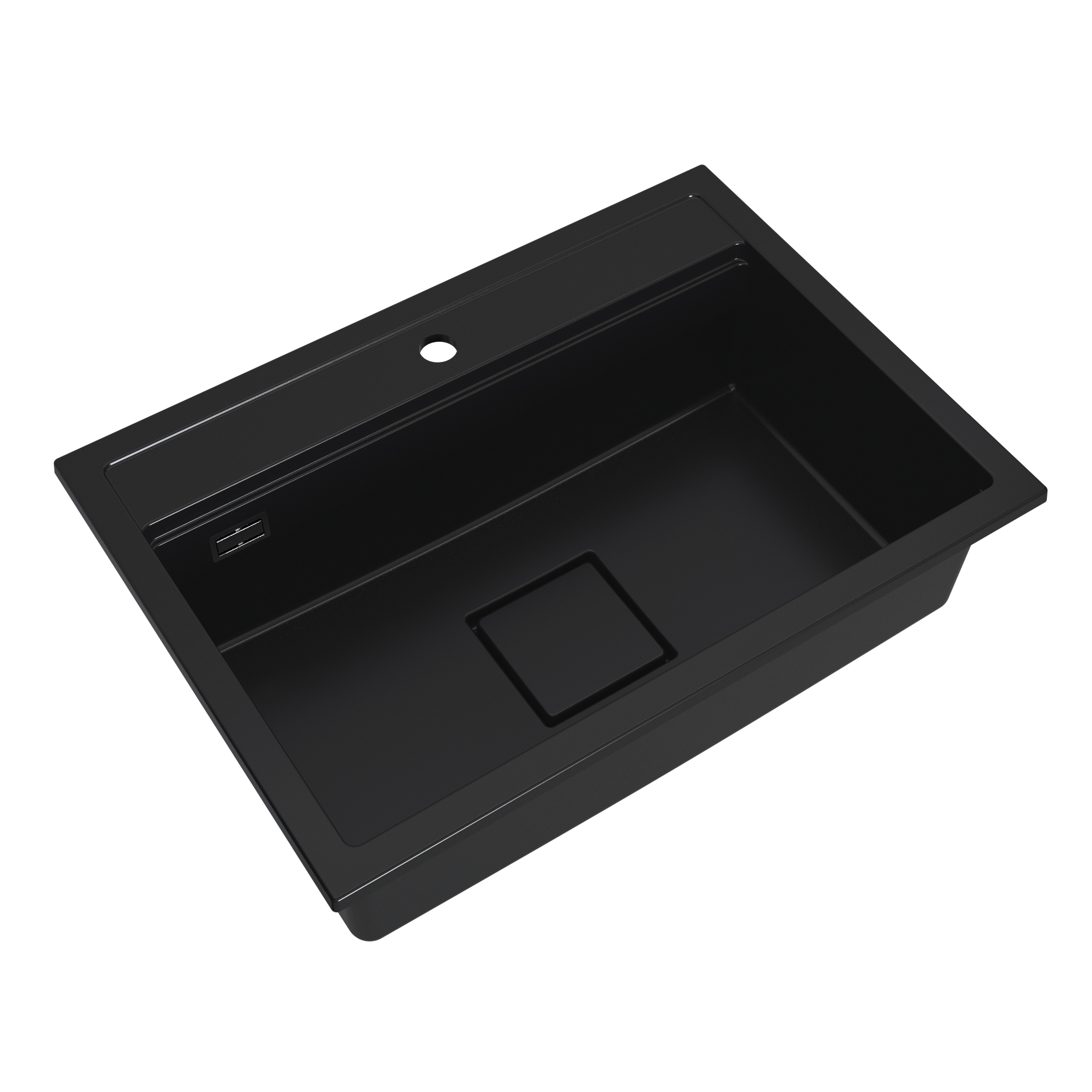 QUADRO 7050 egymedencés gránit mosogató, mély medencével, fekete-szemcsés, fekete, bézs, fehér és szürke színekben.