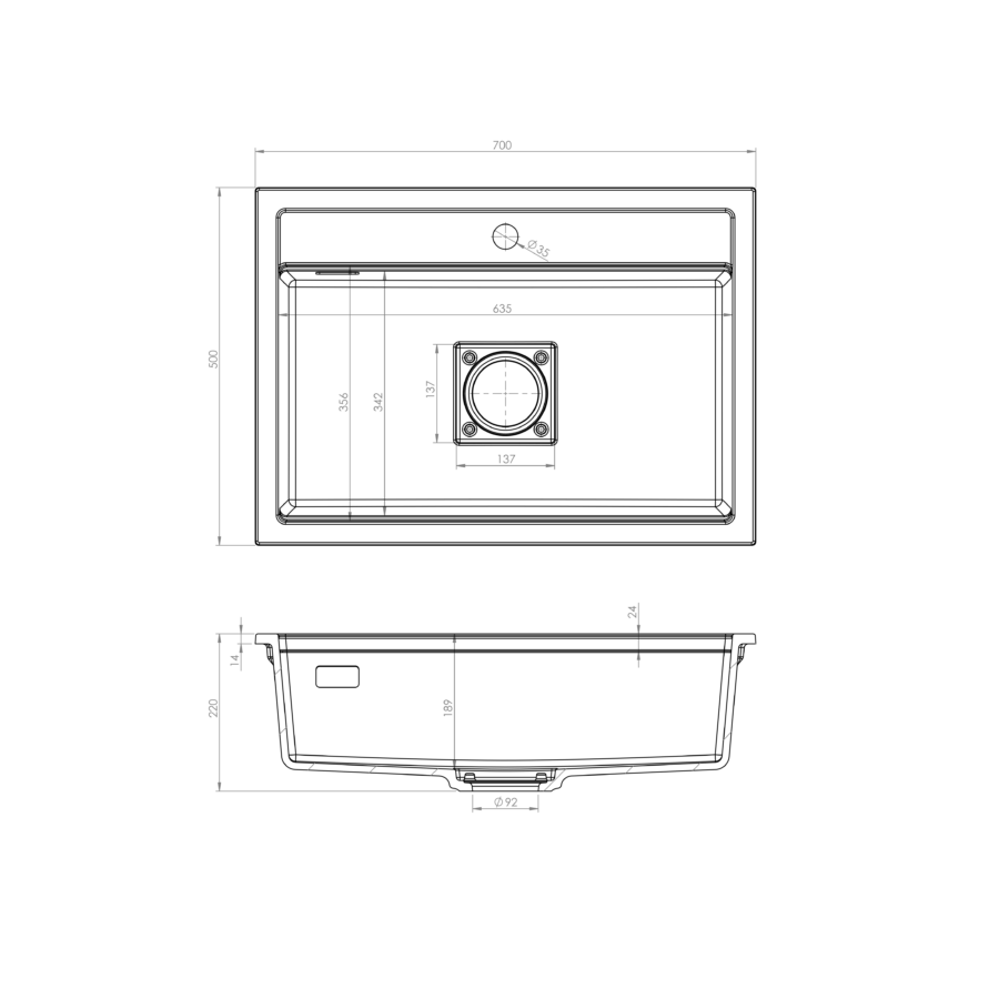 A QUADRO 7050 egymedencés gránit mosogató alapból két előre kifúrt lyukkal érkezik raktárunkba, egy a csaptelepnek a másik az automata dugóemelőnek, igény szerint kérhető extra lyuk a folyadékadagoló számára. A QUADRO 7050 egymedencés gránit mosogató tisztítása nagyon egyszerű, felülete könnyen tisztán tartható, ehhez elegendő egy szivacs, és bármilyen a háztartásban megtalálható tisztítószerrel nedvesen letisztítani, (nem maró hatásúval!) majd papírtörlővel szárazra törölni.