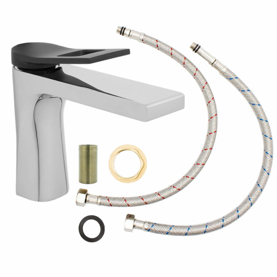 A csomag tartalma: csaptelep, bekötő csövek, tömítések, minden szerelvény, ami a bekötéshez szükséges