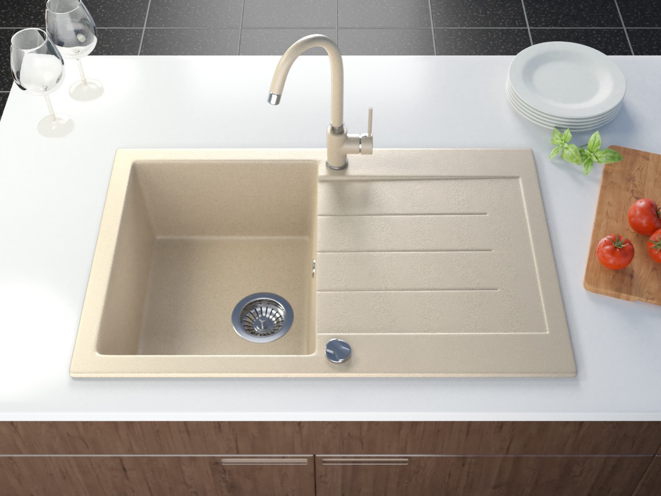 Roxy egymedencés gránit mosogató csepegtető tálcával, automata dugóemelő, szifonnal, bézs, beépíthetőExclusive 60 gránit mosogató, jobbos csepegtetővel, fekete, beépíthető