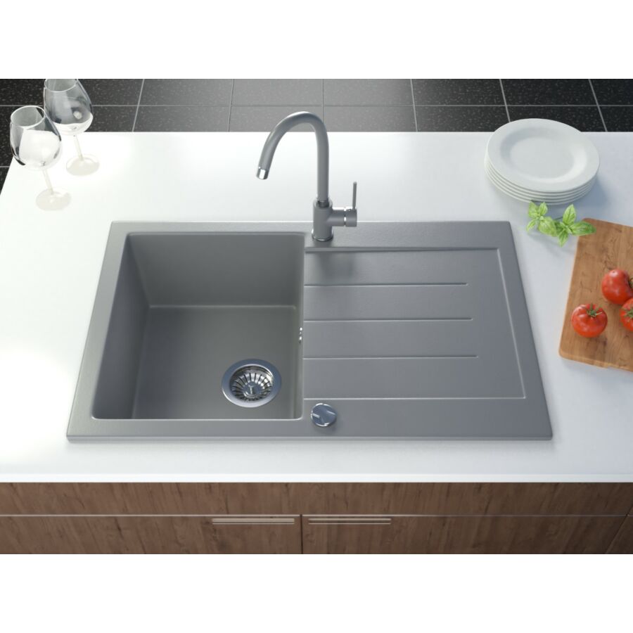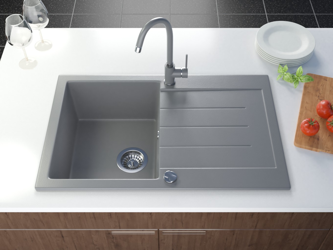 Roxy gránit mosogató automata dugóemelő, szifonnal, szürke, beépíthetőRoxy egymedencés gránit mosogató csepegtető tálcával, automata dugóemelő, szifonnal, bézs, beépíthető