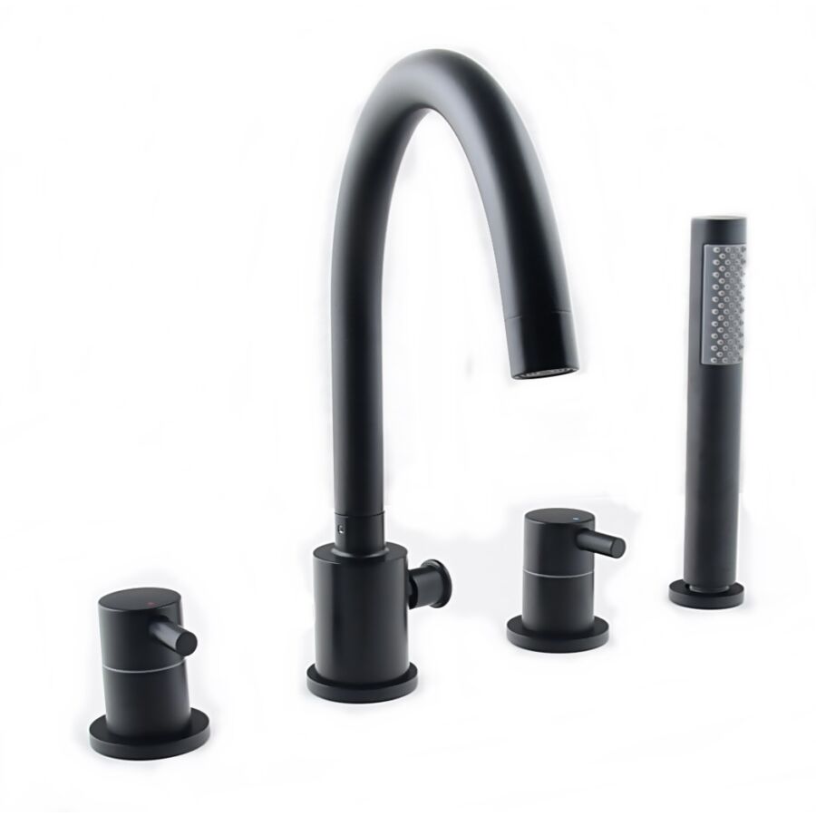 Roy kádtöltő csaptelep + kihúzható zuhanyfej, kádra szerelhető fekete 4 részes