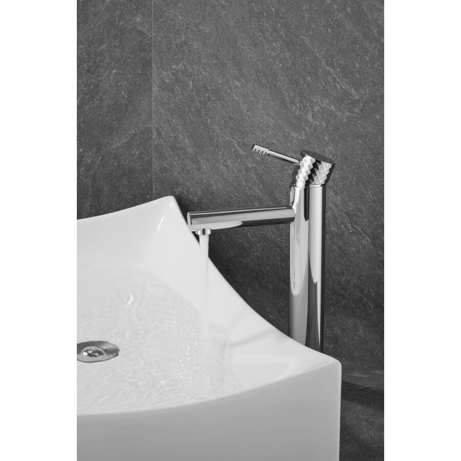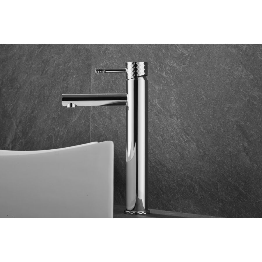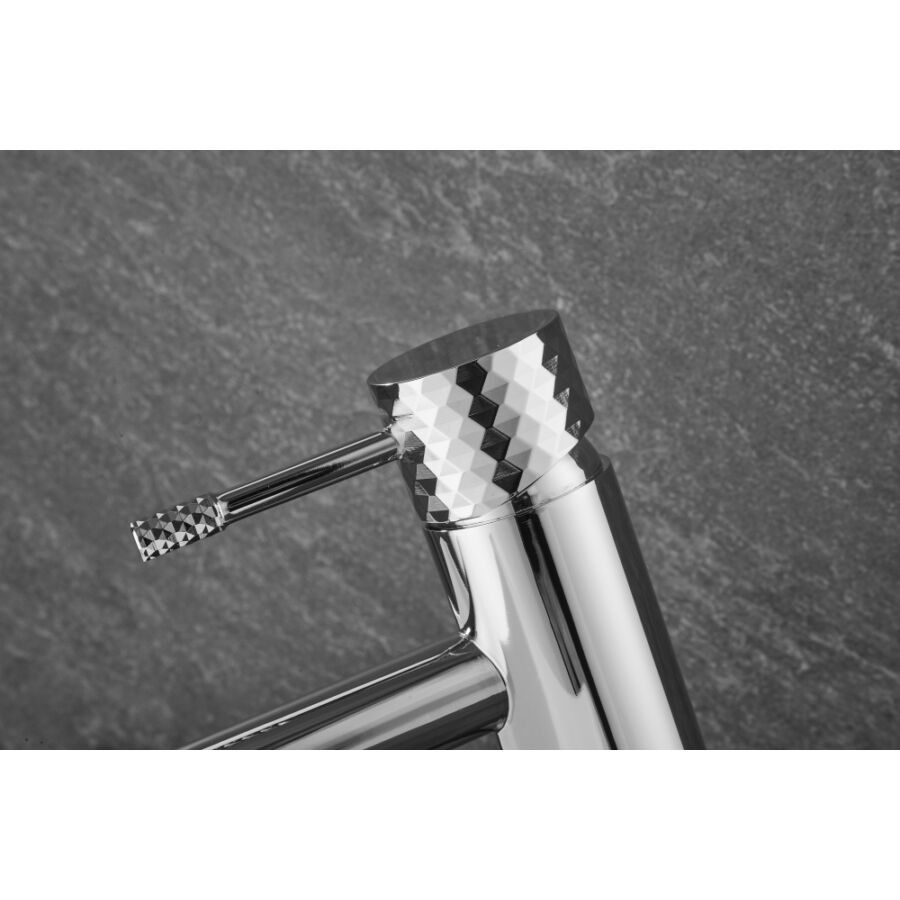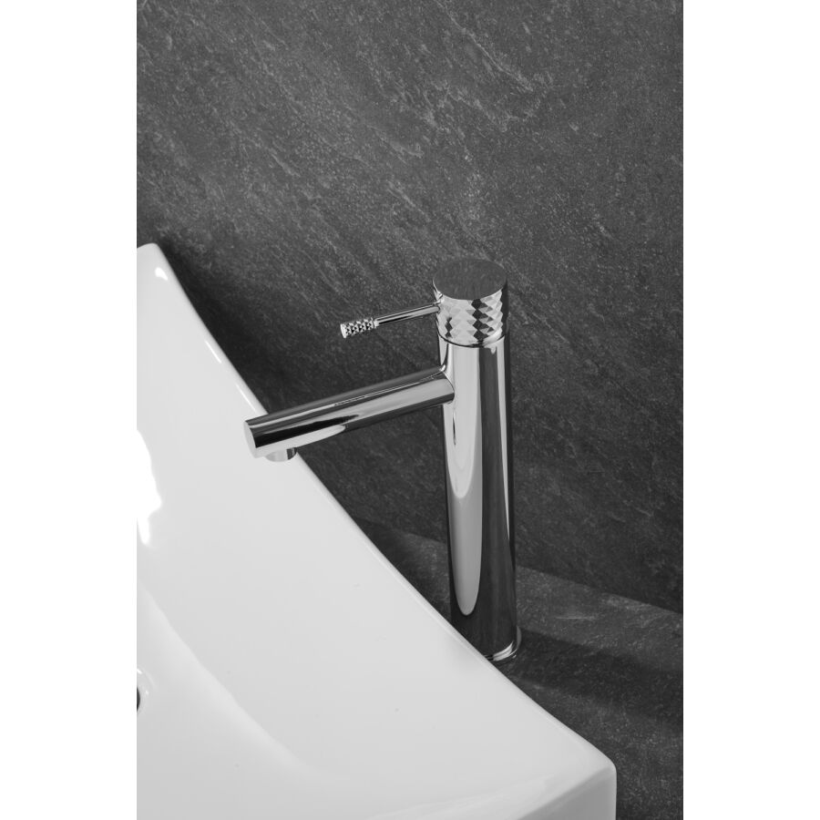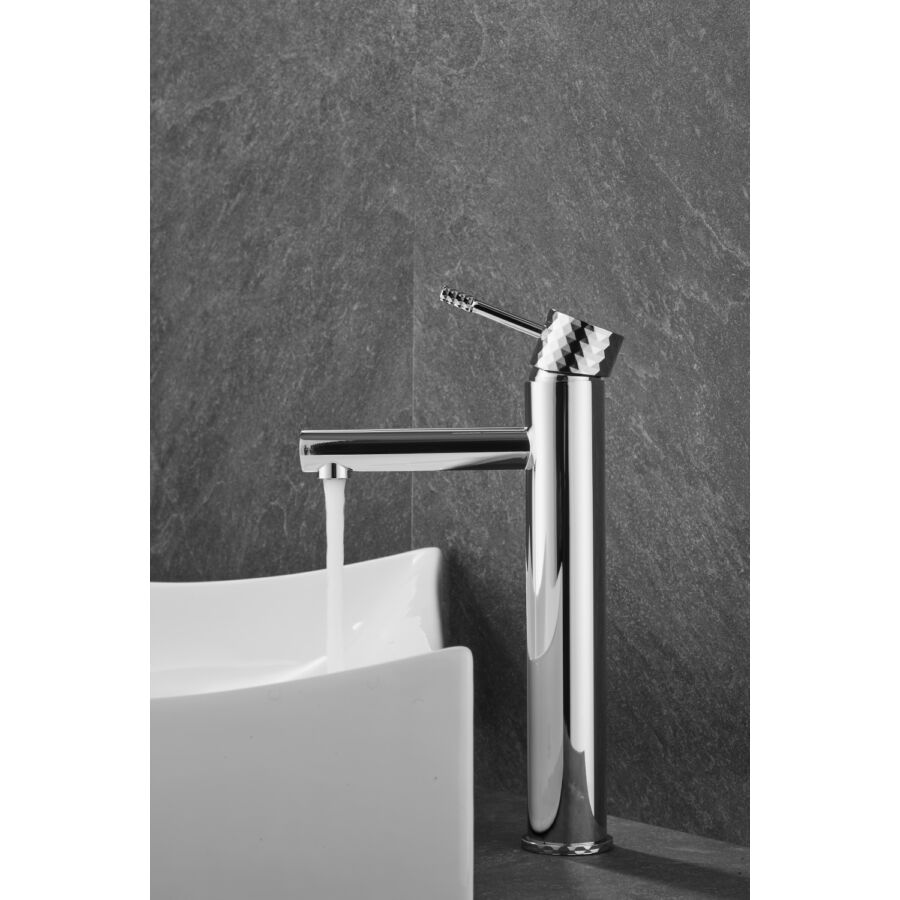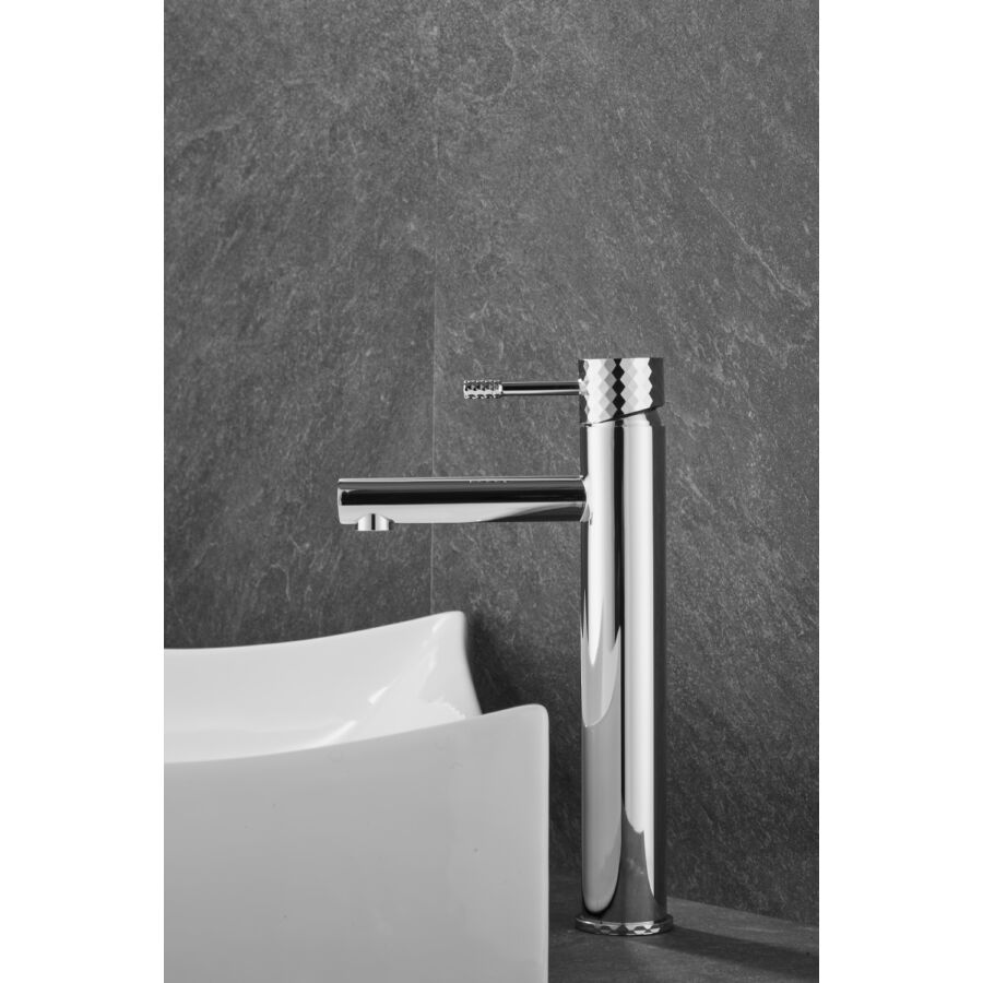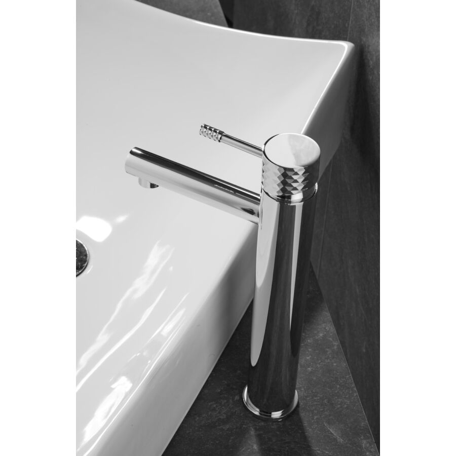 A Roy Pro magas mosdócsaptelep elegáns króm kivitelben tökéletes megoldás a modern fürdőszobákba, különösen pultra szerelhető mosdókagylókkal párosítva. Kiváló minőségű sárgarézből készült, tartósságot, korrózióállóságot és hosszú élettartamot biztosít. A gomb jellegzetes gyémántcsiszolt felülete egyedi stílust és exkluzív karaktert kölcsönöz.