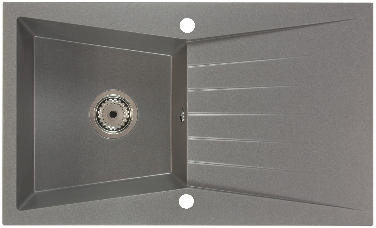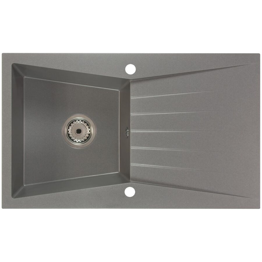 RUBIN egymedencés gránit mosogató csepptálcás kivitelben, különleges kialakítású mély medencével, fekete-szemcsés, fekete, bézs, fehér és szürke színekben. Jobbos és balos kivitelben is használható. A RUBIN egymedencés gránit mosogató csepegtető tálcával min. 45 cm széles szekrénybe építhető be.