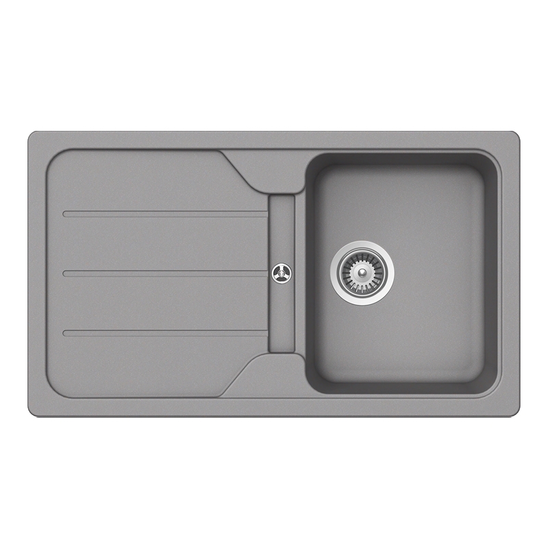 SCHOCK Formhaus D-100 Cristalite Croma 860 x 500 mm gránit mosogatótálca, szifonnal, szürke, beépíthetőSchock Typos D-100S konyhai mosogatótálca Cristalite Moonstone 860 x 435 mm, gránit kompozit, megfordítható, hagyományos beépítés, bézs, beépíthető