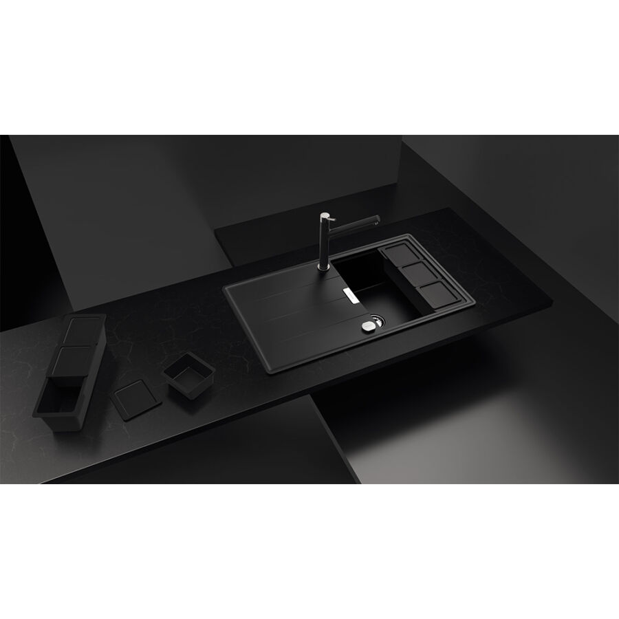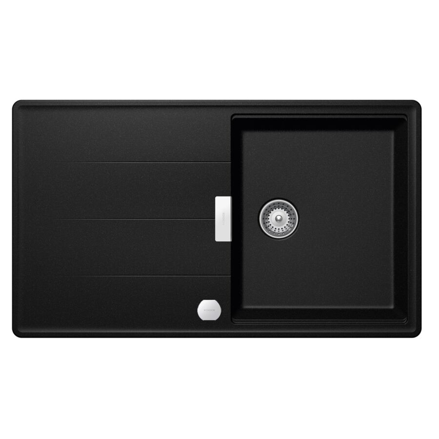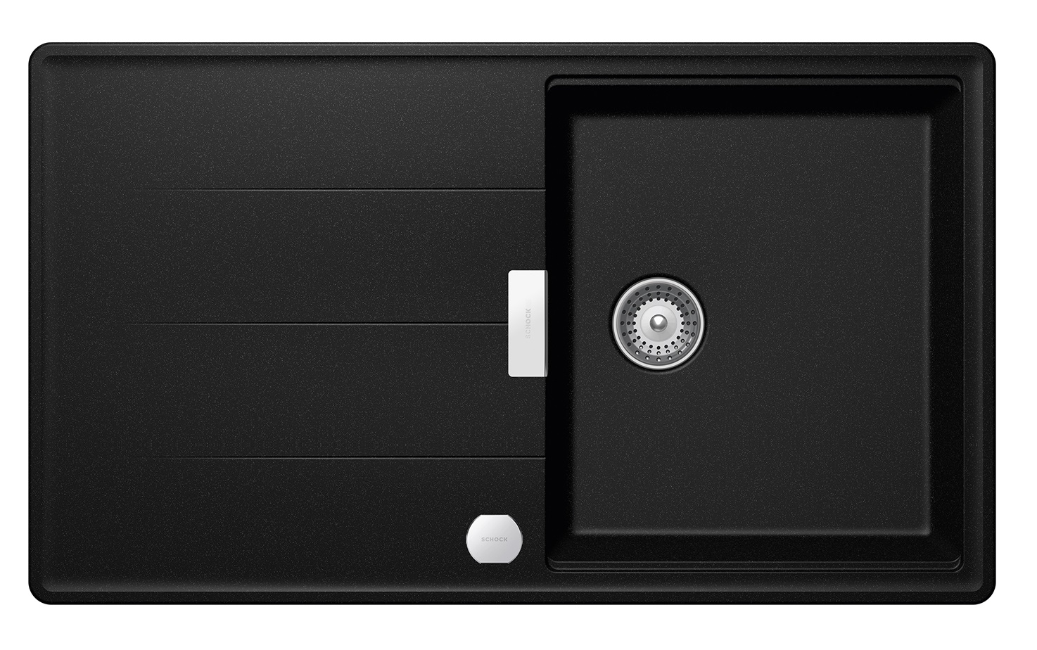 SCHOCK Tia D-100 Cristadur Puro gránit mosogatótálca, automata szűrőkosras leeresztővel, szifonnal, fekete, beépíthető