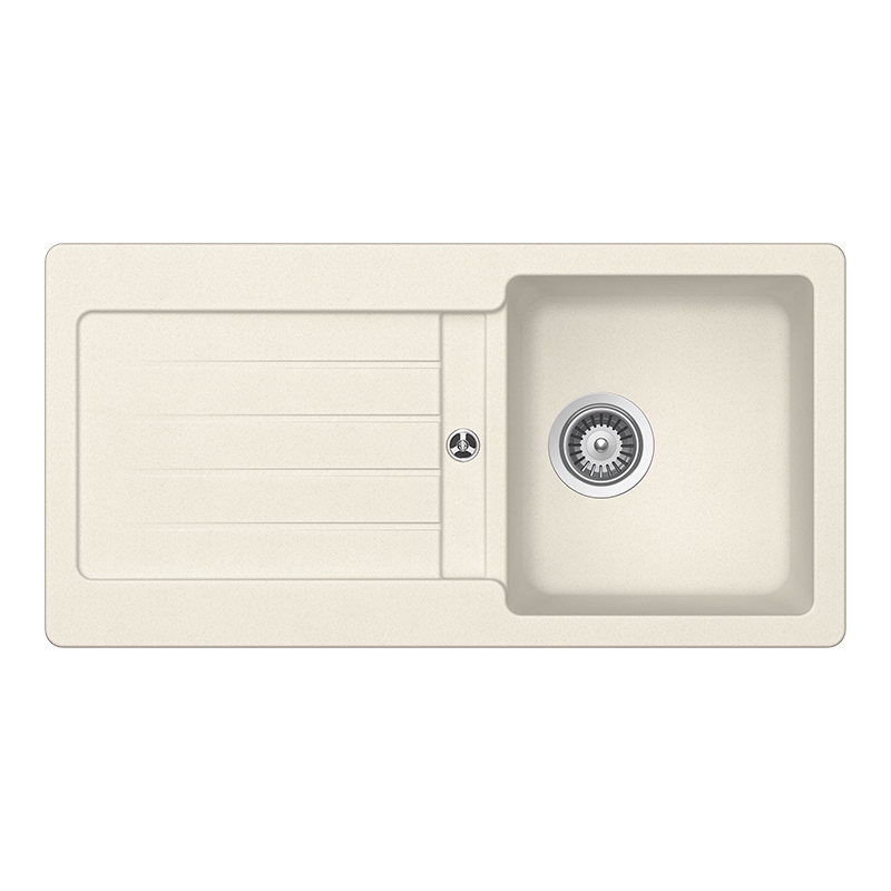 Schock Typos D-100S konyhai mosogatótálca Cristalite Moonstone 860 x 435 mm, gránit kompozit, megfordítható, hagyományos beépítés, vanilla, beépíthetőSCHOCK Formhaus D-100 Cristalite Moonstone 860 x 500 mm gránit mosogatótálca, szifonnal, bézs, beépíthető